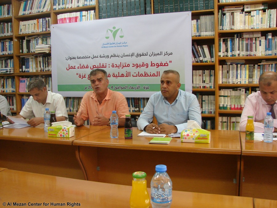 مركز الميزان ينظم ورشة عمل متخصصة بعنوان: ضغوط وقيود متزايدة: تقليص فضاء عمل المنظمات الأهلية في قطاع غزة