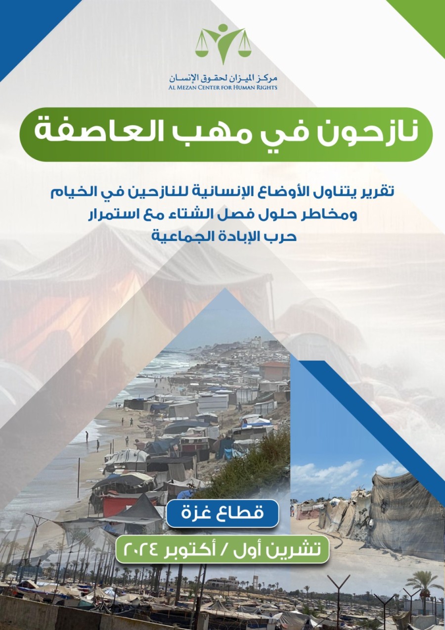 تقرير يتناول الأوضاع الإنسانية للنازحين في الخيام ومخاطر حلول فصل الشتاء مع استمرار حرب الإبادة الجماعية