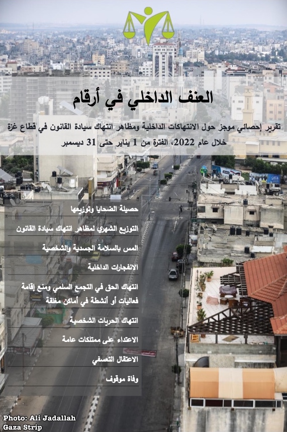 تقرير إحصائي موجز حول الانتهاكات الداخلية ومظاهر انتهاك سيادة القانون في قطاع غزة خلال عام 2022، الفترة من 1 يناير حتى 31 ديسمبر