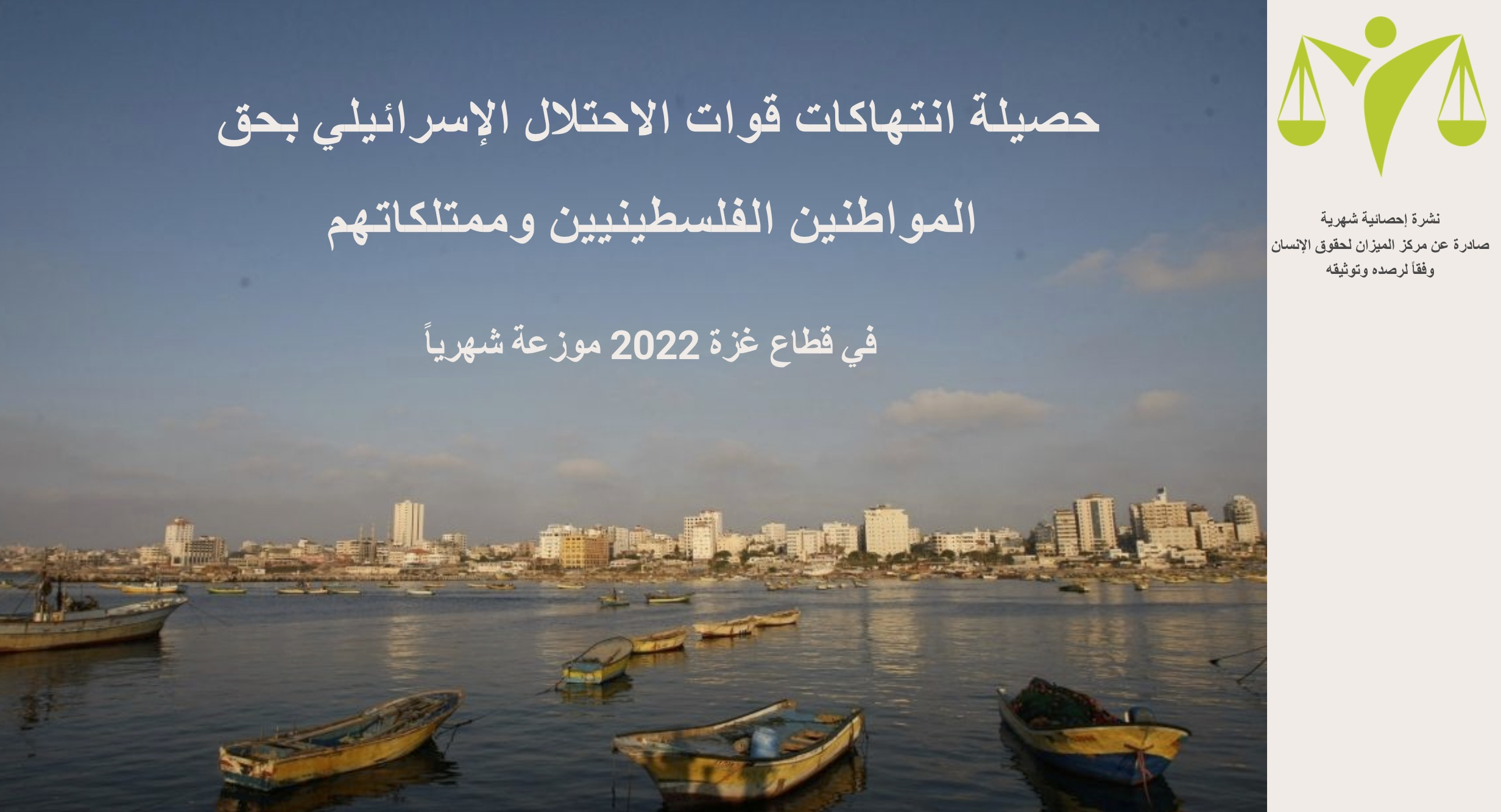 حصيلة انتهاكات سيادة القانون بحق المواطنين الفلسطينيين وممتلكاتهم في قطاع غزة 2022 موزعة شهرياً