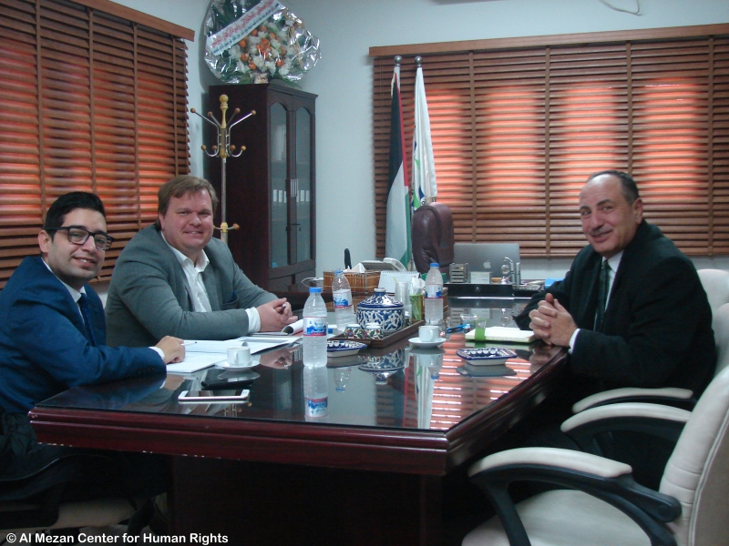 وكان مدير مركز الميزان قد استقبل يوم الأحد الموافق ١٣/١/٢٠١٩، السيد برونو ديميير مدير الدائرة القانونية في اللجنة الدولية للصليب الأحمر في مكتب اسرائيل والاراضي المحتلة والسيد خليل الوزير المستشار القانوني في اللجنة، وجرى خلال اللقاء استعراض الأوضاع الإنسانية في قطاع غزة، ودور مركز الميزان والخدمات التي يقدمها لتعزيز احترام وحماية حقوق الإنسان ومساعدة الضحايا، ولاسيما أعمال الرصد والتوثيق وتقديم العون القانوني للضحايا. فيما استعرض السيد ديميير عمل اللجنة الدولية، والقضايا التي تشكل محل اهتمام من قبلهم ودورهم في هذا الوقت في الأراضي الفلسطينية.