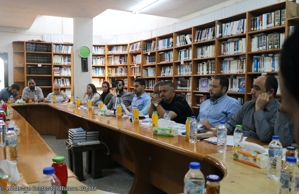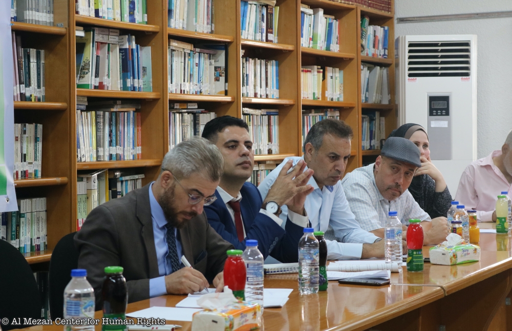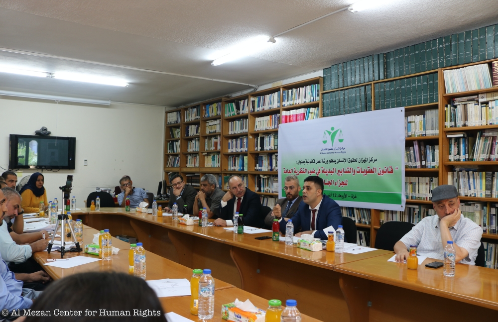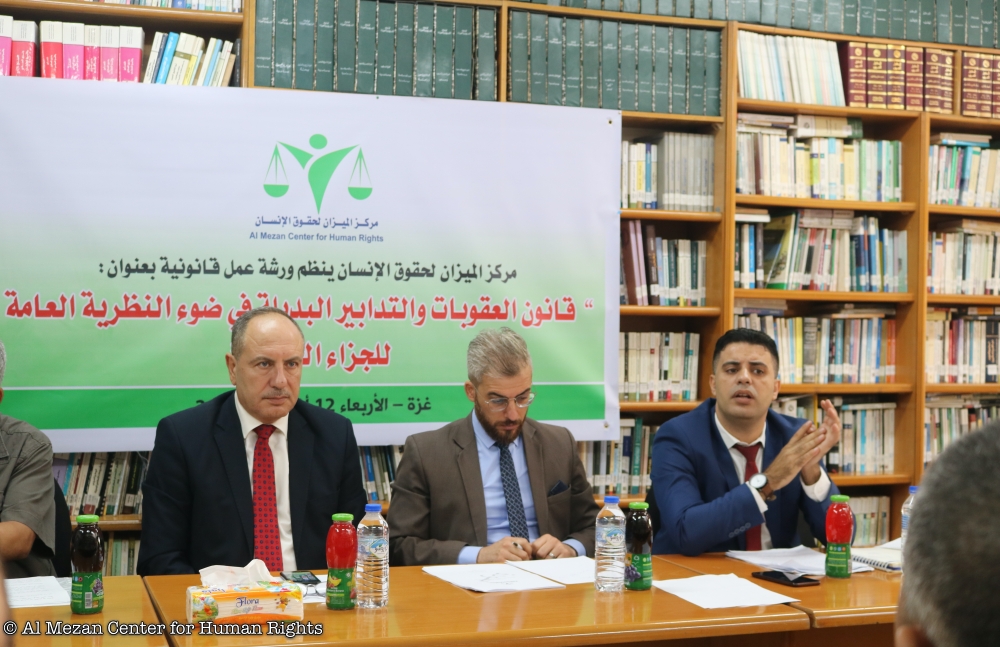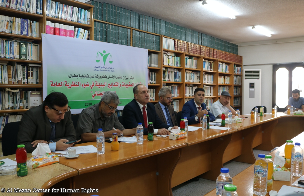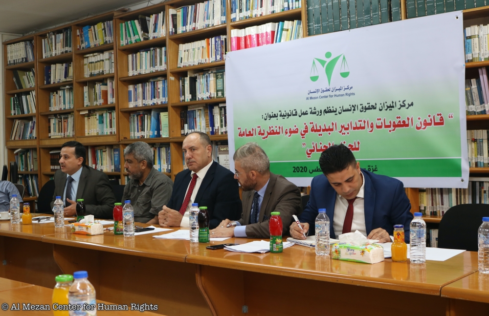 نظم مركز الميزان لحقوق الإنسان، عند الساعة 10:00 من صباح يوم الأربعاء الموافق 12/8/2020م، ورشة عمل متخصصة بعنوان: "قانون العقوبات والتدابير البديلة في ضوء النظرية العامة للجزاء الجنائي"، في قاعة المركز بمدية غزة، وحضر الورشة (28) من الأكاديميين ومؤسسات المجتمع المدني ومحامون وجهات ذات علاقة.