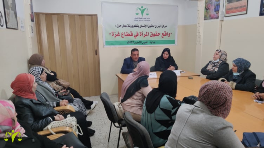 في مكتبه بجباليا (الميزان) ينظم ورشة عمل حول واقع حقوق المرأة في قطاع غزة