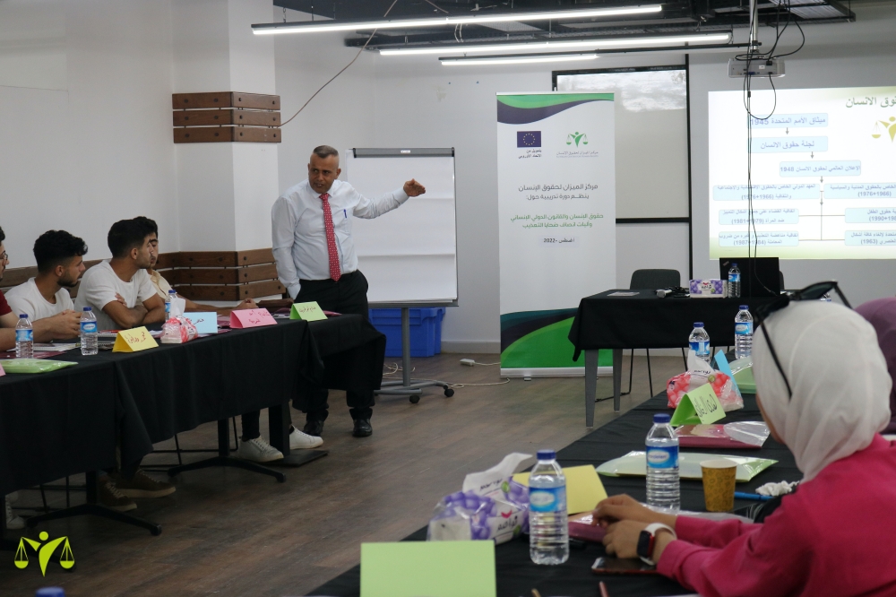 افتتحت وحدة التدريب والاتصال المجتمعي في مركز الميزان لحقوق الانسان وبالتعاون مع الاتحادات العامة لطلبة الكليات الطبية في الجامعات دورة تدريبية بعنوان (حقوق الإنسان والقانون الدولي الإنساني.. وسبل إنصاف ضحايا التعذيب)، يوم الاثنين الموافق 15 أغسطس بواقع (4) أيام تدريبية حيث تستهدف الدورة 20 طالب/ة من طلبة الكليات الطبية، منهم 10 طالبات. وذلك ضمن مشروع "العمل المشترك من أجل الصحة "تعزيز وحماية الرعاية الصحية المناسبة والحق في الصحة للمرضى ذوي الإحالات الطبية، السجناء/المعتقلين، والفقراء في الأراضي الفلسطينية المحتلة"، الممول من الاتحاد الأوروبي.