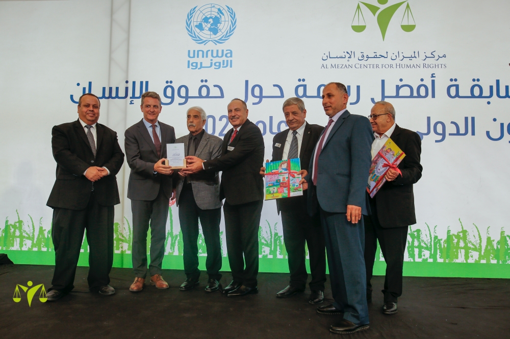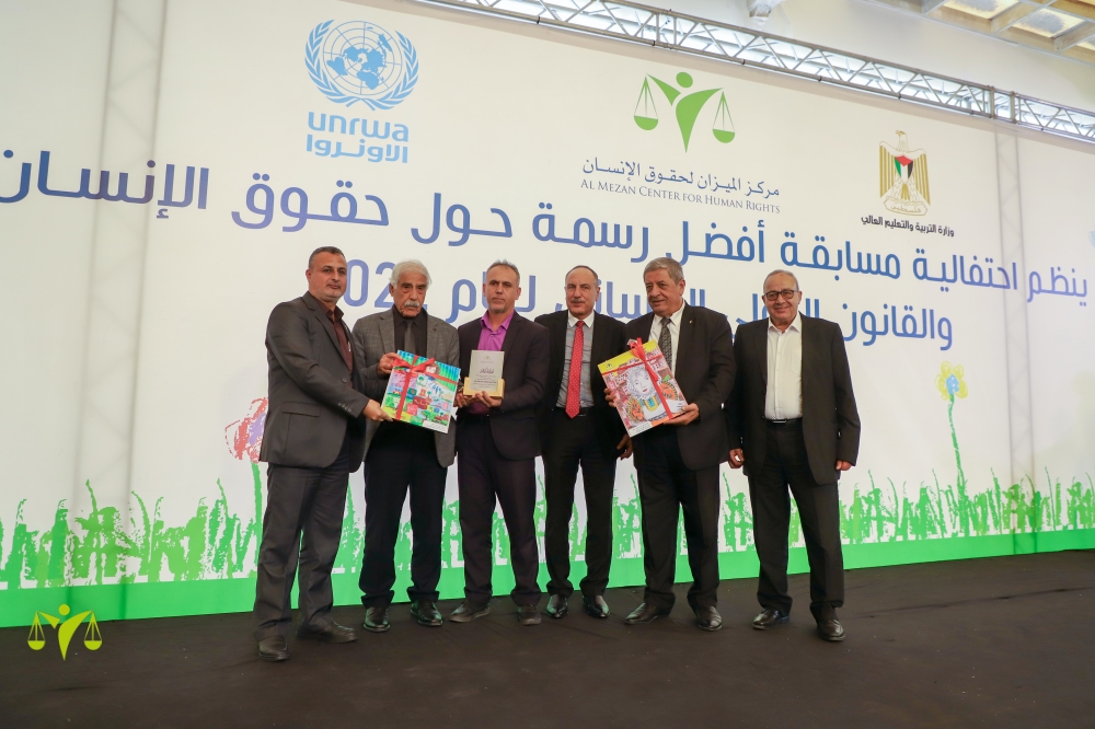 احتفل مركز الميزان لحقوق الإنسان في اليوم العالمي لحقوق بتنظيم حفله السنوي الذي يتوج بتكريم الفائزين/ت في مسابقة أفضل رسمة حول حقوق الإنسان والقانون الدولي الإنساني لعام 2022، بمشاركة وزارة التربية والتعليم، وبرنامج التعليم في وكالة غوث وتشغيل اللاجئين الفلسطينيين "الأونروا"، ولفيف من الشخصيات العامة وأهالي الطلبة/ات الفائزين. ونظم الحفل صباح الأربعاء الموافق 21/12/2022، في قاعة فندق ومطعم الديرة. يذكر أن الميزان ينظم المسابقة للعام الثاني عشر على التوالي.