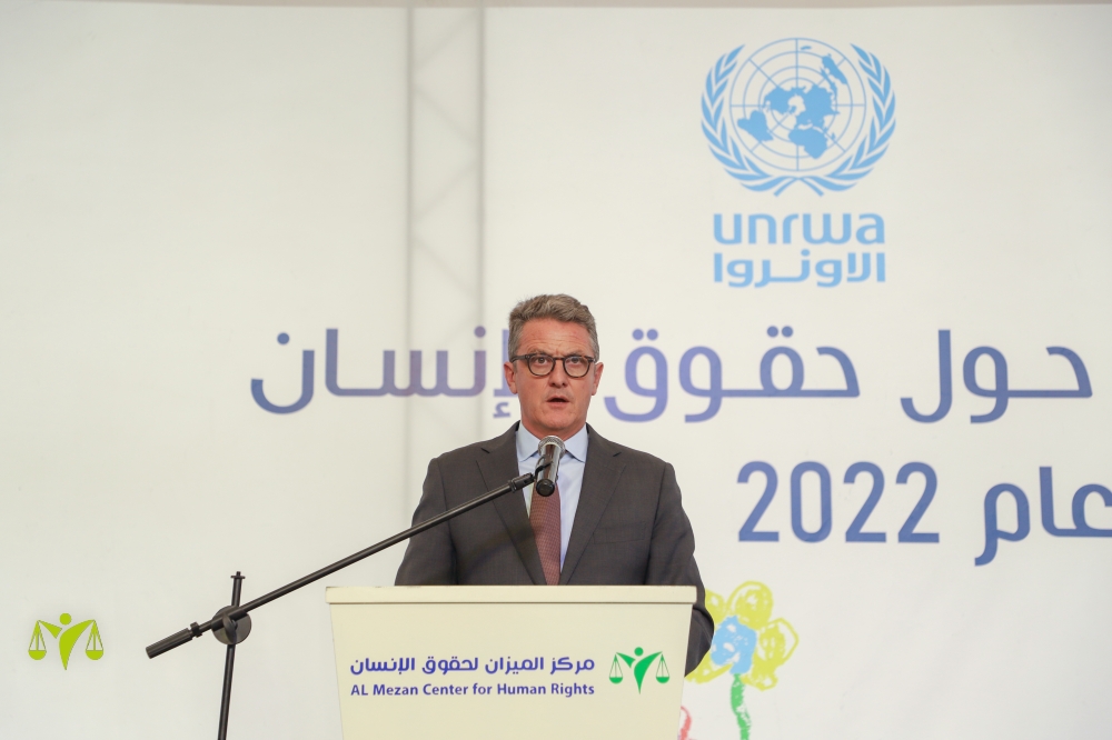 ومن جانبه شكر السيد توماس وايت مدير عمليات وكالة غوث وتشغيل اللاجئين الفلسطينيين الأونروا مركز الميزان على جهوده في تنفيذ الفعالية، مشيراً إلى دور المركز في تعزيز ثقافة حقوق الإنسان، الأمر الذي ينعكس على مشاركات وأداء الطلاب والطالبات. لافتاً إلى أنّ طلبة غزة عبروا عن حقوقهم بطرق إبداعية ومبتكرة، عكست واقع حقوق الإنسان في القطاع، لكونهم والسكان جميعهم محرومون من حقوقهم، مشيراً إلى أن غزة هي المكان الأكثر تحدياً في العالم للتعرف على حقيقة أهمية حقوق الإنسان، داعياً إلى أهمية تثقيف الأطفال والشباب والشابات بحقوق الإنسان، متمنياً للطلاب والطالبات مزيداً من النجاح.