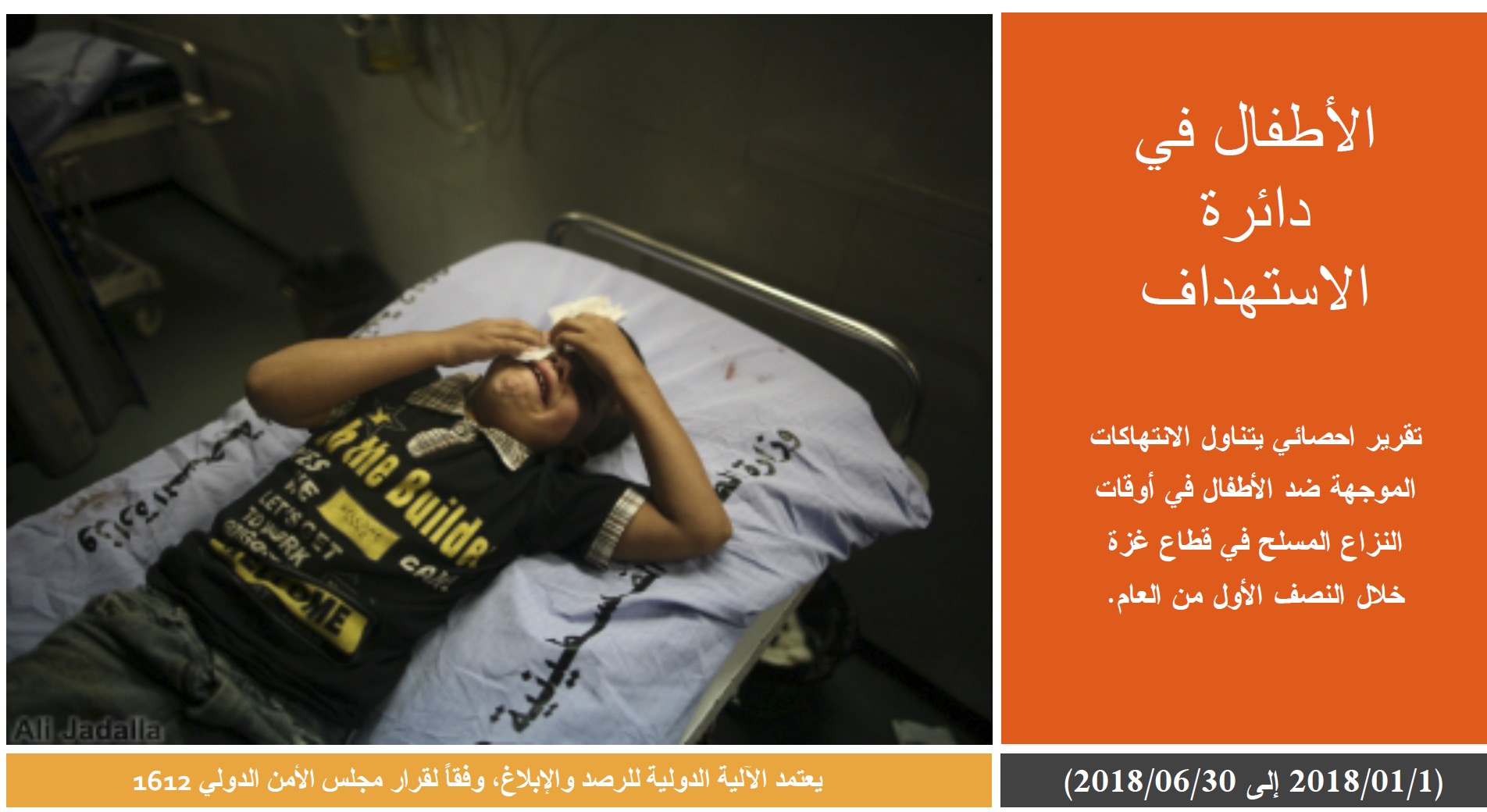 تقرير احصائي يتناول الانتهاكات الموجهة ضد الأطفال في أوقات النزاع المسلح في قطاع غزة خلال النصف الأول من العام 2018.