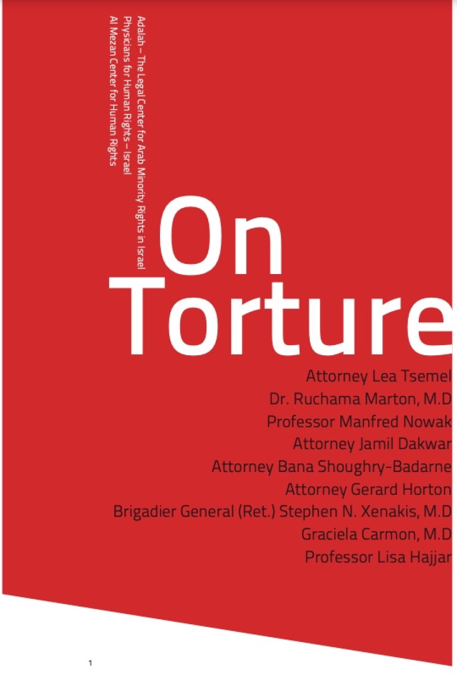 “On Torture” is an edited volume of essays by Palestinian, Israeli and international legal and medical experts and practitioners based on presentations that they gave during a workshop held in Jerusalem in April 2011 entitled, “Securing Accountability for Torture and Cruel, Inhuman and Degrading Treatment (CIDT) in Israel: New Trends and Comparative Lessons”.