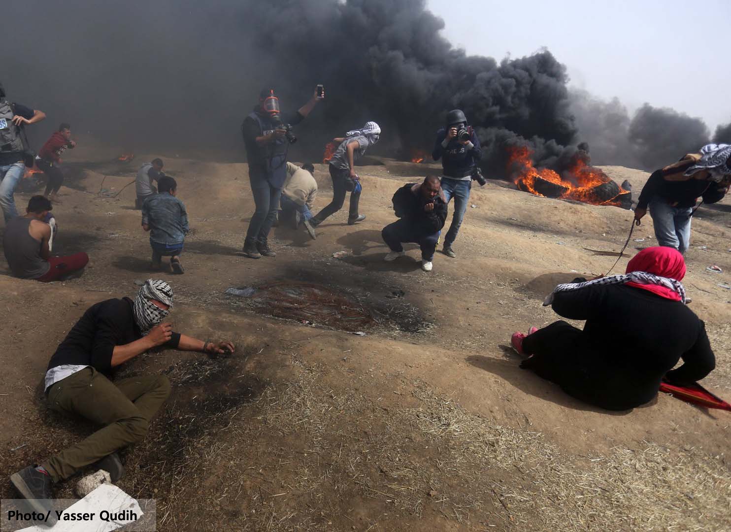 On the fourth Friday of the “Great Return March”, Israeli occupation forces opened fire at hundreds of Palestinians joining demonstrations along the border of the Gaza Strip. Israeli forces continued the practice of employing excessive and lethal force against unarmed protesters, journalists and paramedics. Four protesters were killed on Friday, 20 April 2018, including a child. Another 136 others were injured, including 18 children, four women, two paramedics, and one journalist. Of those injured, 60 suffered wounds from live fire, and two are in critical condition.