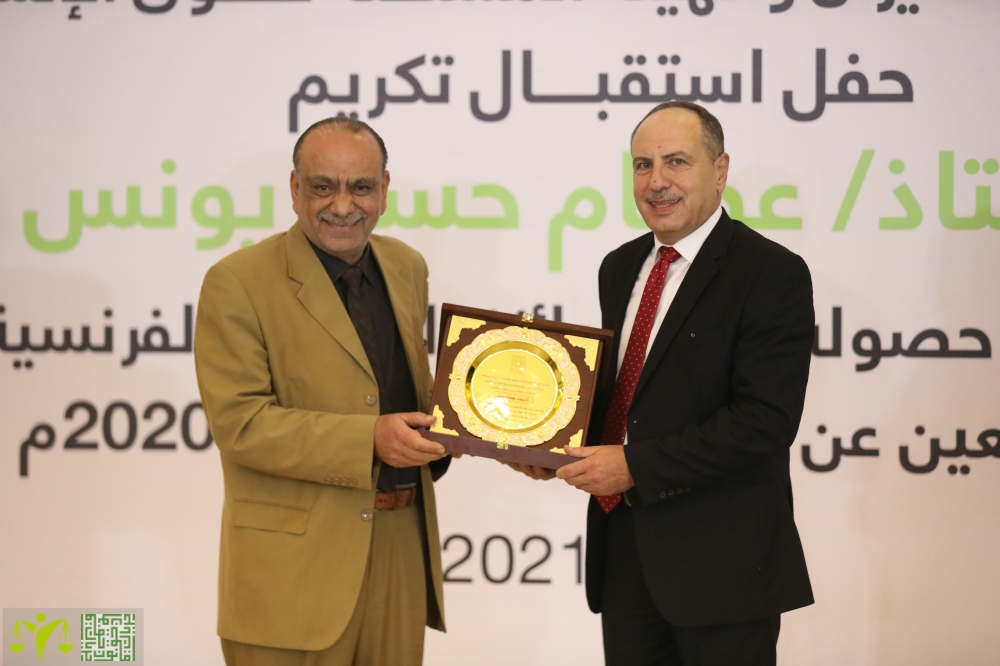 Dr. Kamal al-Sharafi, Al Mezan’s chairman of the board of directors, Mr. Talal Okal, ICHR board member, and Mr. Raji Sourani, director of the Palestinian Centre for Human Rights, spoke at the ceremony, praising Mr. Younis’ exceptional professionalism and dedication throughout his thirty-year career protecting and promoting human rights, accountability, and the rule of law in occupied Palestine.
