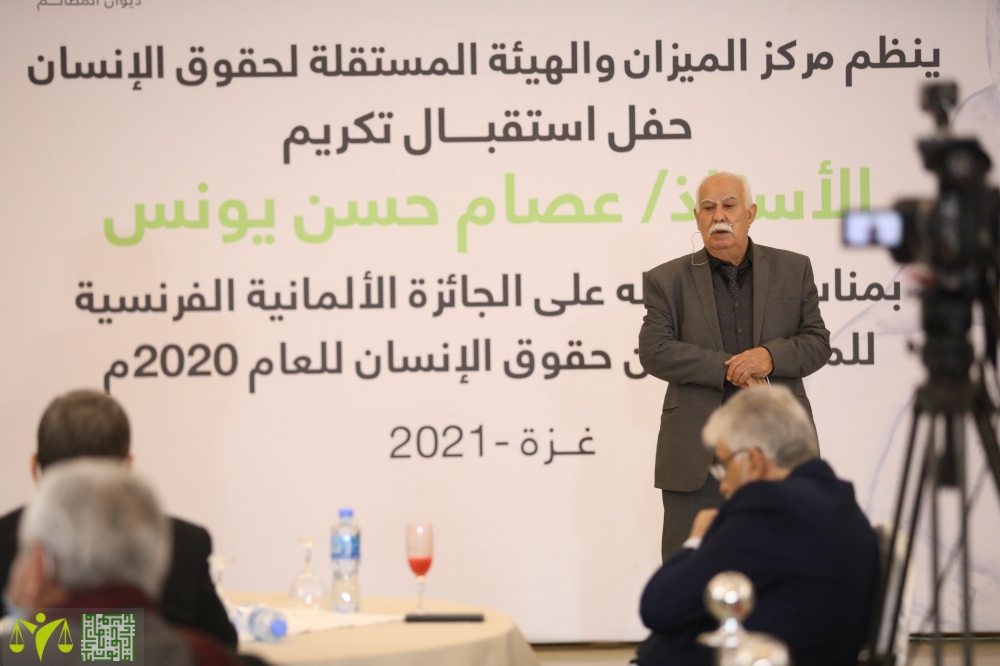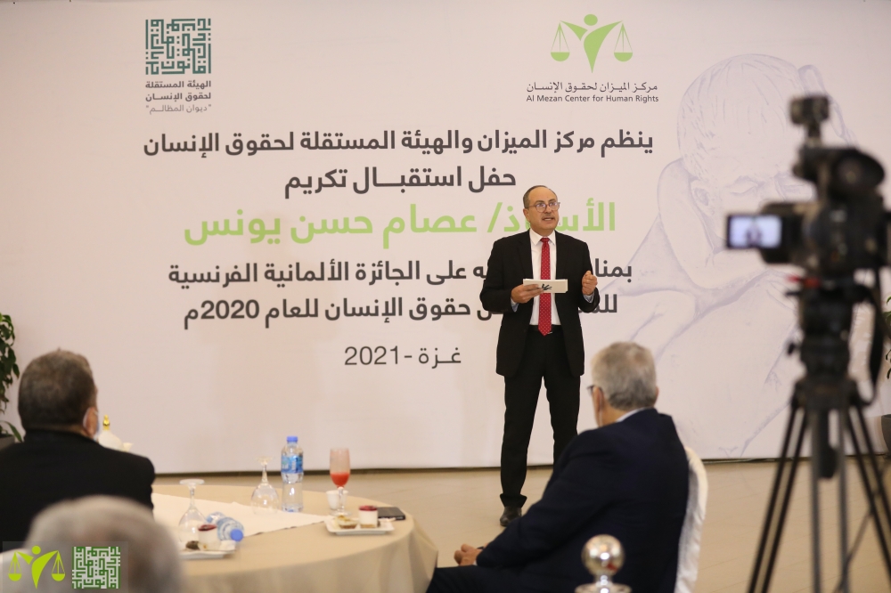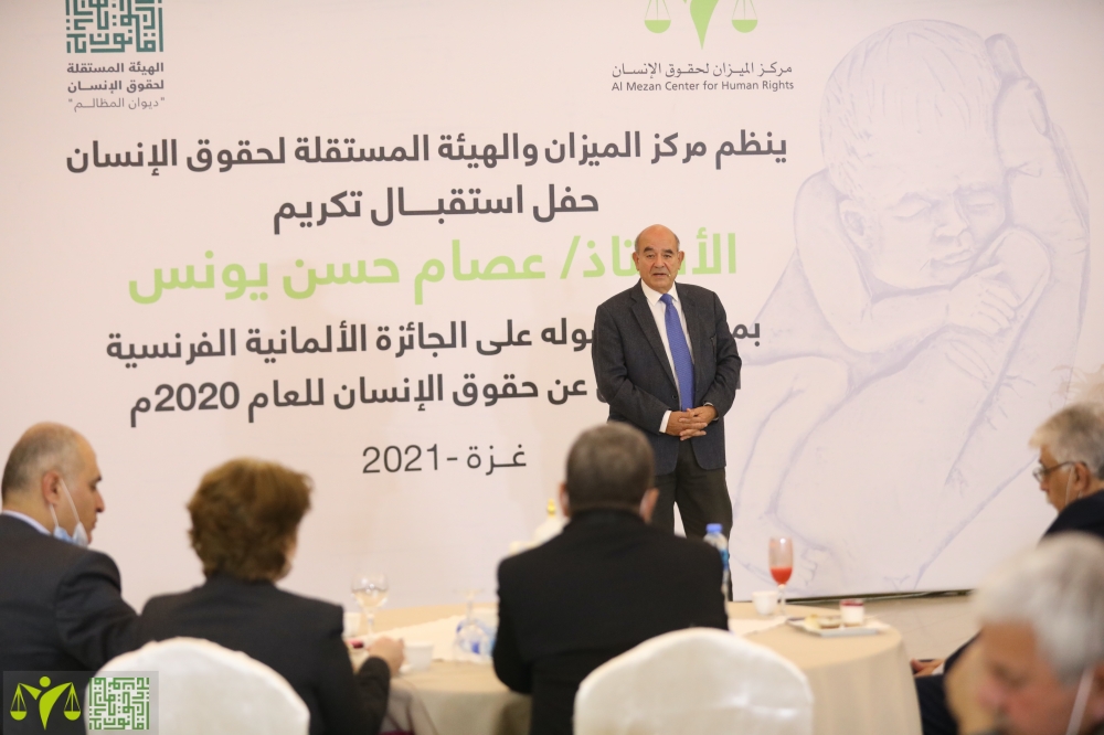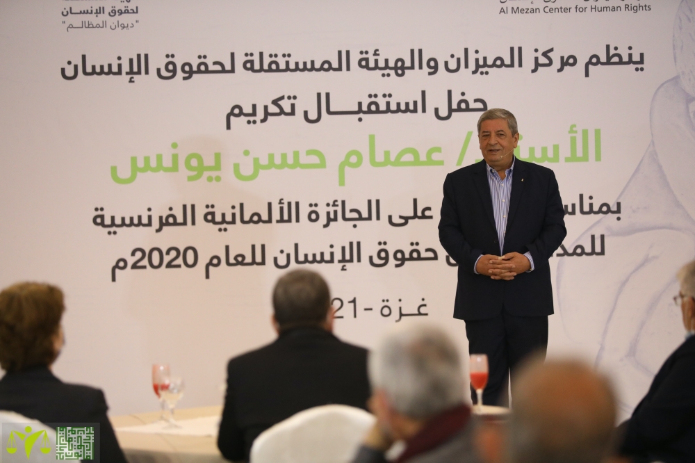 On Monday, 11 January 2021, Al Mezan Center for Human Rights (Al Mezan) and the Independent Commission for Human Rights (ICHR) hosted a reception in honor of Mr. Issam Younis, Al Mezan’s Director-General and ICHR’s Commissioner-General, upon his receipt of the Franco-German Prize for Human Rights and the Rule of Law on 8 December 2020. Since 2016, this joint French and German prize has been awarded annually to human rights defenders who have made an exceptional contribution to the protection and promotion of human rights and the rule of law in their respective countries.