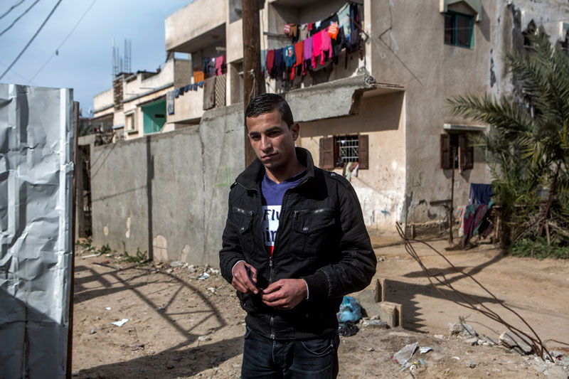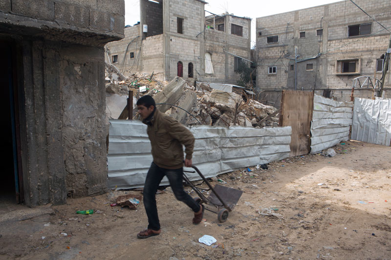 At approximately 2:55pm on Tuesday, 8 July 2014, an Israeli drone fired a missile at the house of Odeh Ahmed Mohamed Kaware’ that is located in Jurat Al Lout area in Khan Younis. Five families were living in the three-story house. The residents of the house evacuated and a large number of neighbours gathered on the top of the house and in the street to try to stop the Israeli forces from attacking it. About ten minutes later, an Israeli warplane attacked the house. As a result, nine people were killed, including six children. Another 28 people were injured. The house was totally destroyed. Al Mezan identified the people killed as follows: