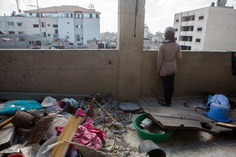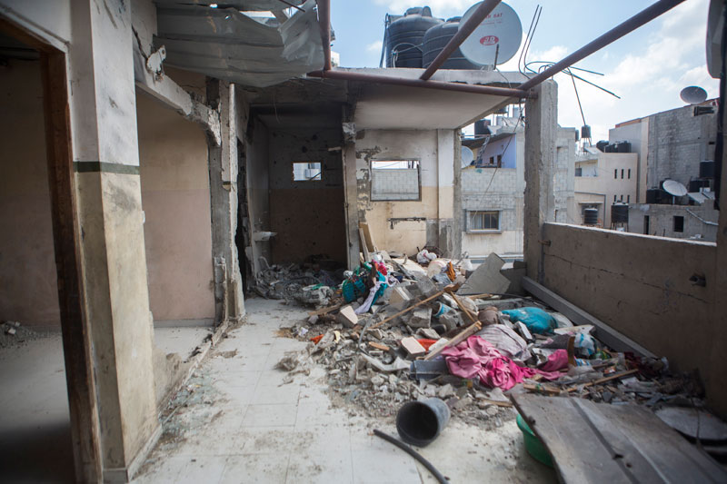 At approximately 3:50pm on Monday, 21 July 2014, an Israeli warplane fired a missile at the flat of Yasser Khader Al Qassas, 40, which is located on the fourth floor of his father's house on Al Thalathini Street, south Gaza City. Half of the roof of the flat is made of cement and the other half from tin sheets. Nine people were killed in the attack, including six children and three women. Another four people were injured, including two children and one woman.