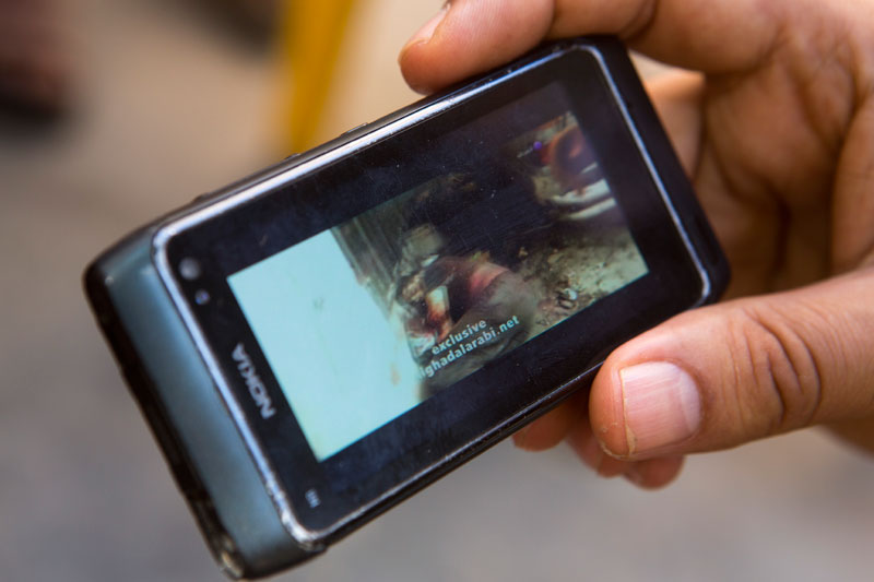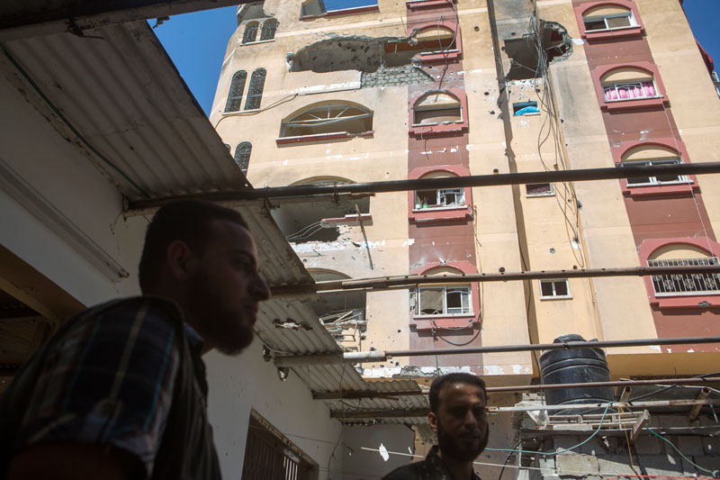 They were hiding behind the stairs, but because of the heavy bombings they attempted to flee the area and were attacked while fleeing down a street, just dozens of meters from Nasser's house which was also damaged.