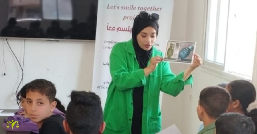 وناقشت المدهون مع الأطفال أكثر السلوكيات الخطيرة التي يمارسها الأطفال وأسباب وقوع حوادث مخلفات الحرب، مؤكدة على الإجراءات الواجب اتخاذها في حال الاشتباه أو مصادفة أي جسم غريب.