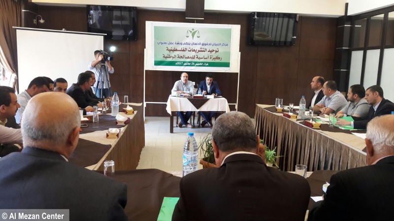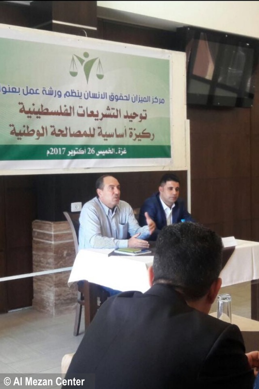 On Thursday, 26 October 2017, Al Mezan Center for Human Rights gathered 36 law practitioners and experts to participate in a workshop entitled “Unifying Legislation: A Critical Basis for Reconciliation”. The workshop is a part of Al Mezan’s efforts to further the national reconciliation process that commenced after an agreement was signed on 12 October 2017 in Cairo by Palestinian factions. The workshop highlighted the importance of constitutional principles being closely followed throughout the reconciliation process in order to achieve effective and durable change that will benefit all Palestinian citizens.