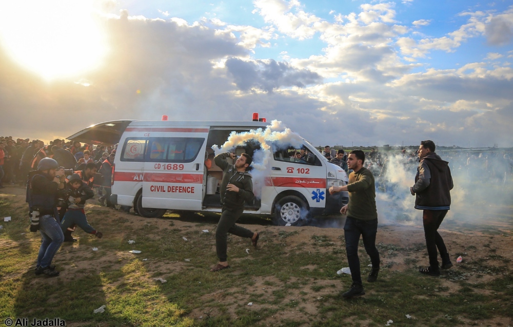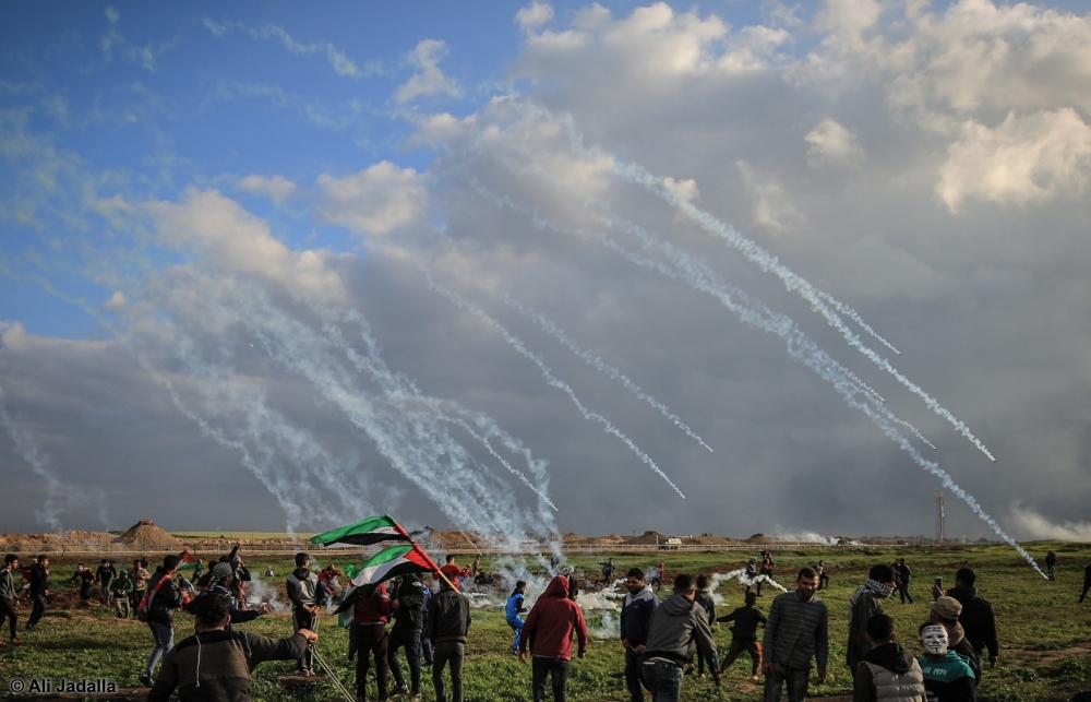 Documentation by Al Mezan Center for Human Rights shows that the Israeli forces continued its policy throughout the past year: using lethal and excessive force in policing demonstrations. Israeli forces targeted unarmed protesters and paramedics and journalists with live ammunition, plastic-coated steel bullets, and tear gas canisters. Drones were also used to fire tear gas canisters onto protests. Al Mezan documented the following casualties on Saturday: