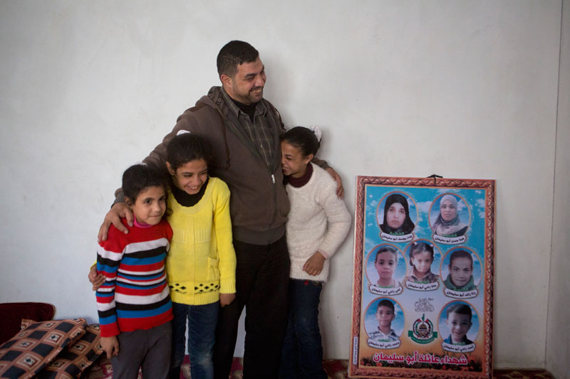 At approximately 2:40 am on Saturday, 2 August 2014, Israeli warplanes fired two missiles targeting the house of the Abu Suleiman family in Tal Al Sultan neighborhood in west Rafah. As a result, nine people were killed, among them seven members from the Abu Suleiman family and 2 from the neighbours. Al Mezan identified their names as follows: