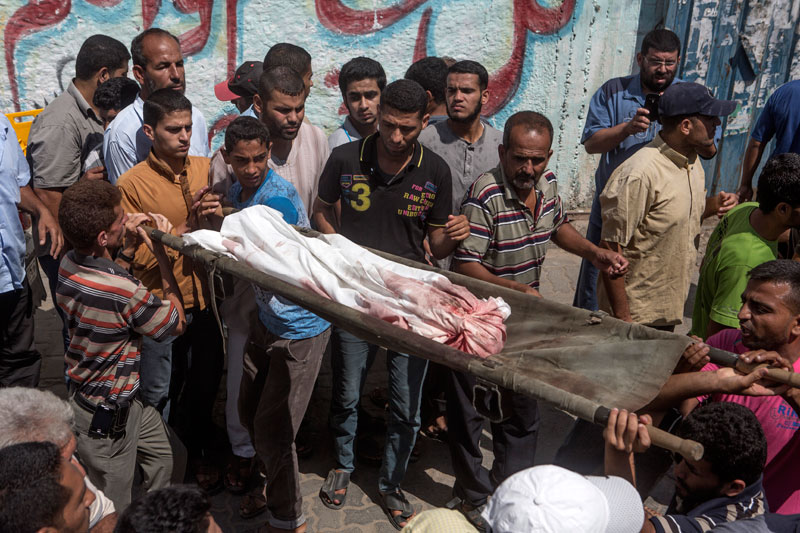 At approximately 3:10 am on Saturday 26 July 2014, an Israeli warplane fired a missile/bomb at the house of Samir Hussein Al Najjar, located in east Khan Younis.