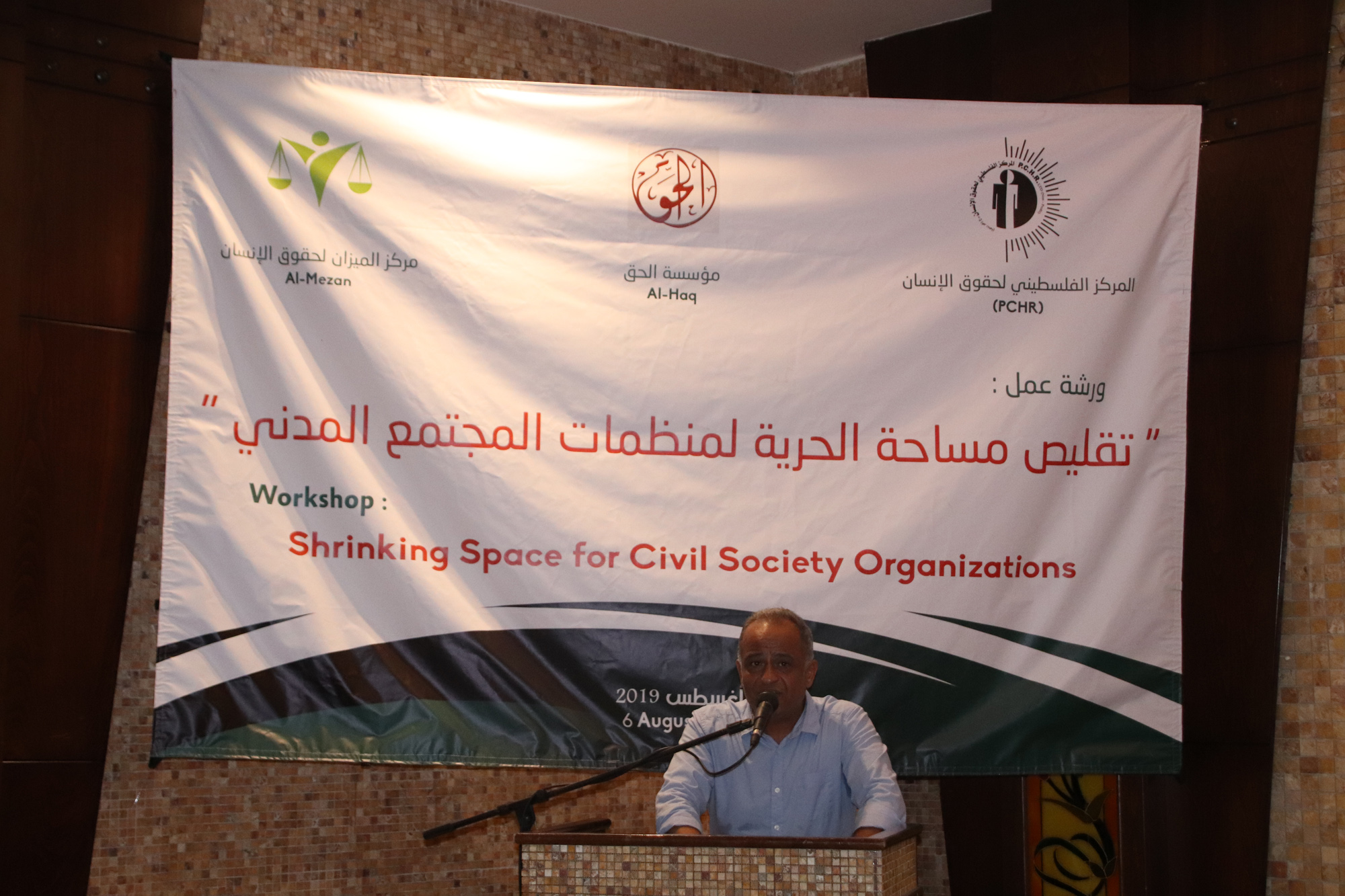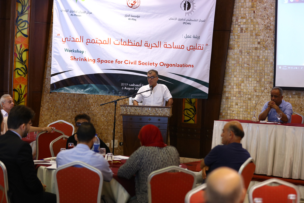 The Palestinian Center for Human Rights (PCHR), al-Haq Organization and al-Mezan Center for Human Rights organized on Tuesday, 06 August 2019, a joint workshop titled: “Shrinking Freedom Space for Civil Society” in Lighthouse Restaurant in Gaza Sea. The workshop, which was attended by tens representing Civil Society Organizations (CSOs) and experts in the issues of the Palestinian civil society, particularly human rights organizations, discussed policies and measures taken against the CSOs and human rights organizations in Palestine to shrink their freedom space and undermine their work and credibility.
