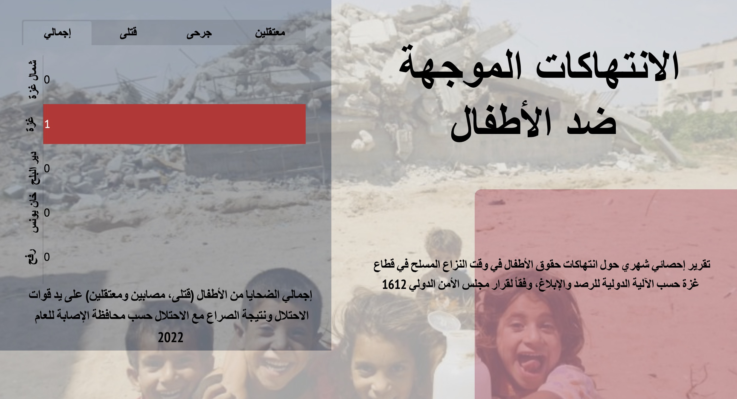 تقرير إحصائي شهري حول انتهاكات حقوق الأطفال في وقت النزاع المسلح في قطاع غزة حسب الآلية الدولية للرصد والإبلاغ، وفقاً لقرار مجلس الأمن الدولي 1612