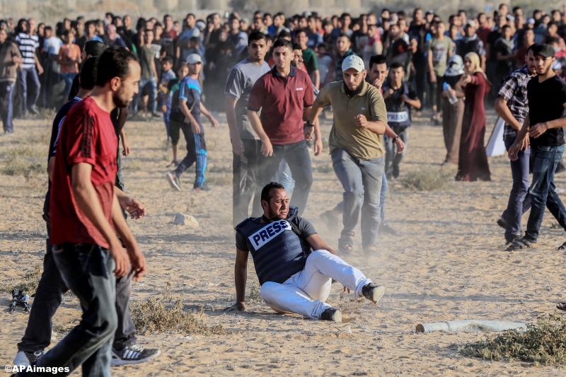 كما واصلت تلك القوات استهداف الصحافيين والعاملين في حقل الإعلام فأوقعت أربعة إصابات، ففي مسيرة شرق جباليا أصيبت الصحفية صافيناز بكر محمود اللوح، (28 عاماً)، بقنبلة غاز في الرأس، وتعمل مصورة ومراسلة لوكالة أمد الإعلامية. وأصيب الصحافي محمد ماجد إسماعيل أبو دقة، (22 عاما)، ويعمل مصوراً في شبكة شرق، وأصيب بالرصاص في ساقيه. وأصيب الصحفي أحمد رياض محمد العامودي، (29 عاماً)، بشظية أسفل ساقه اليمنى، ويعمل مصوراً في شبكة أخبار غزة العاجلة، وكلاهما أصيبا شرق خانيونس. والصحفي بلال بسام عودة الصباغ، (27 عاماً)، أصيب بعيار ناري في ساقه اليمنى، ويعمل مصوراً حراً، أصيب شرق غزة.