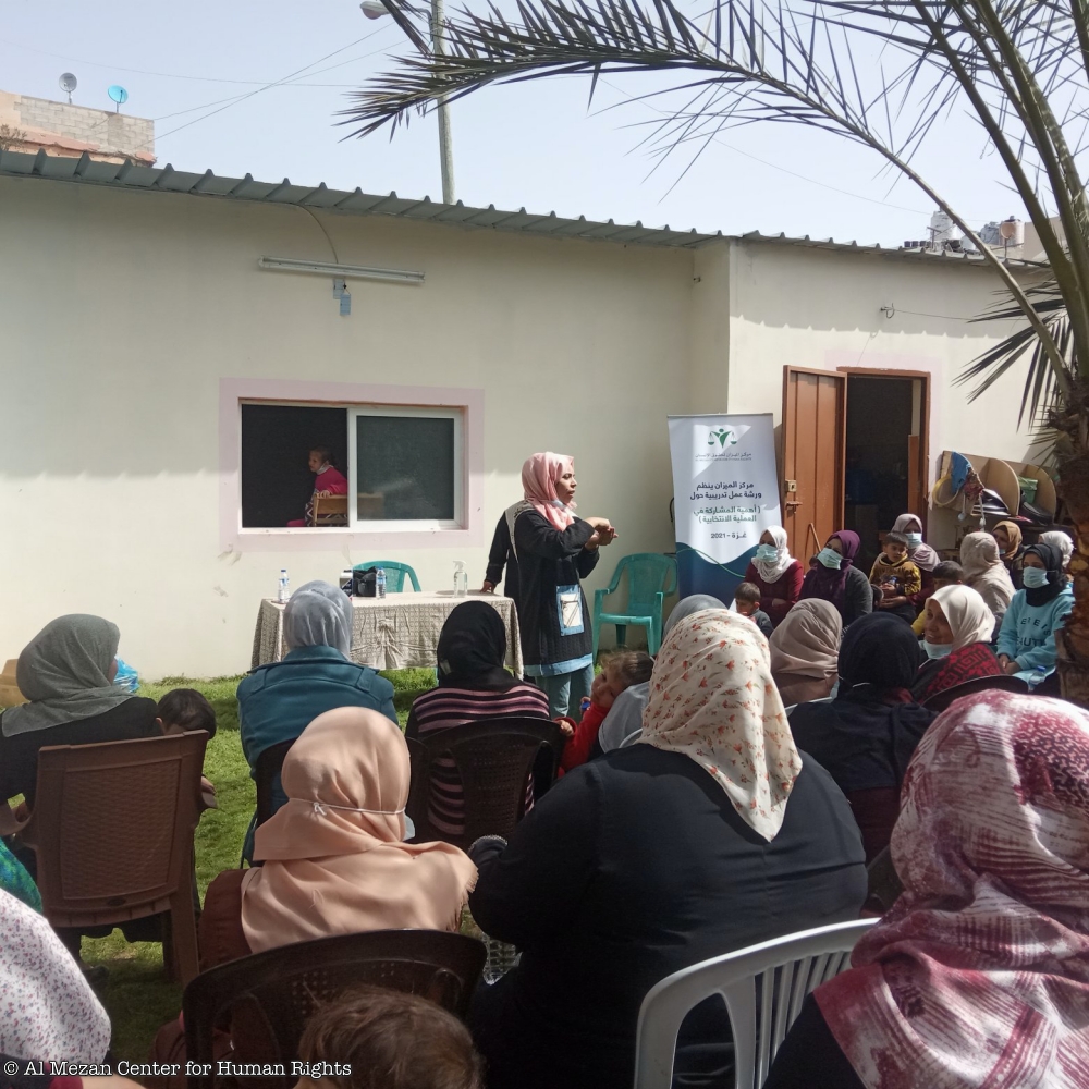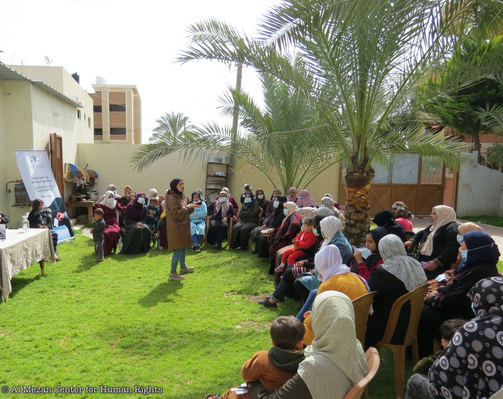 نظمت وحدة التدريب والاتصال المجتمعي في مركز الميزان لحقوق الإنسان، ورشة عمل توعوية حول (أهمية مشاركة النساء في العملية الانتخابية)، في عزبة عبد ربه شرق مخيم جباليا بالتعاون مع جمعية تكوين، واستهدفت الورشة (47) مزارعة، وذلك اليوم الثلاثاء الموافق 9/3/2021.