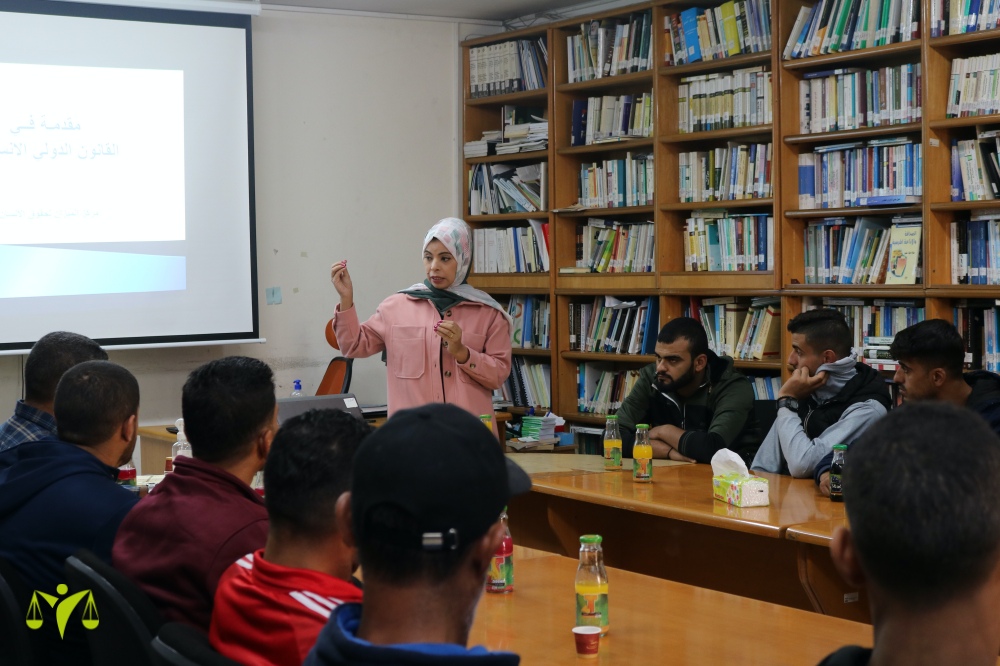 هذا وافتتحت الورشة المحامية نهى أبو ظريفة من وحدة التدريب، واستهلت الورشة في التعريف بعمل المركز ودوره في رفع الوعي وتقديم المساعدة القانونية للضحايا، وأكدت على أهمية التواصل مع المركز بوحداته المختلفة لتلقي الخدمات المناسبة. وتناولت في الجلسة الأولى القانون الدولي الإنساني ونطاق تطبيقه وقواعده الأساسية، وحماية المدنيين في النزاعات المسلحة والحد من آثار النزاعات المسلحة عليهم وتقييد أساليب ووسائل القتال وفقاً لاتفاقيات جنيف الرابعة، مؤكدةً على قواعد حماية الصيادين في القانون الدولي الإنساني، كما تناولت إلتزامات دولة الاحتلال بموجب اتفاقيات جنيف الرابعة.