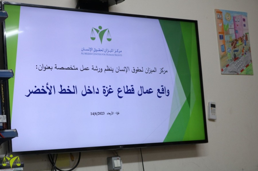 نظم مركز الميزان لحقوق الإنسان يوم الأربعاء الموافق 14/06/2023، ورشة عمل متخصصة بعنوان: واقع عمال قطاع غزة داخل الخط الأخضر، وذلك بحضور (29) من ممثلين عن وزارة العمل، والهيئة العامة للشؤون المدنية، ووزارة الصحة، والاتحاد العام لنقابات عمال فلسطين، بالإضافة إلى ممثلين عن مؤسسات المجتمع المدني، والمؤسسات الاقتصادية والمهتمين.