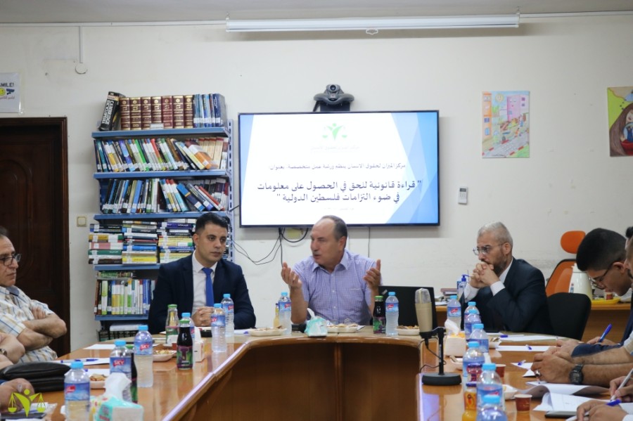 نظم مركز الميزان لحقوق الإنسان يوم الخميس الموافق 10/8/2023م، ورشة عمل في قاعة المركز الرئيسي بمدينة غزة، تناولت قراءة قانونية للحق في الحصول على المعلومات في ضوء الاتفاقات الدولية لحقوق الإنسان التي انضمت إليها دولة فلسطين بدون تحفظات، ولا سيما العهد الدولي الخاص بالحقوق المدنية والسياسية، والمعايير الدولية ذات العلاقة، وذلك بحضور لفيف من المحامين، والصحفيين والأكاديميين والحقوقيين.