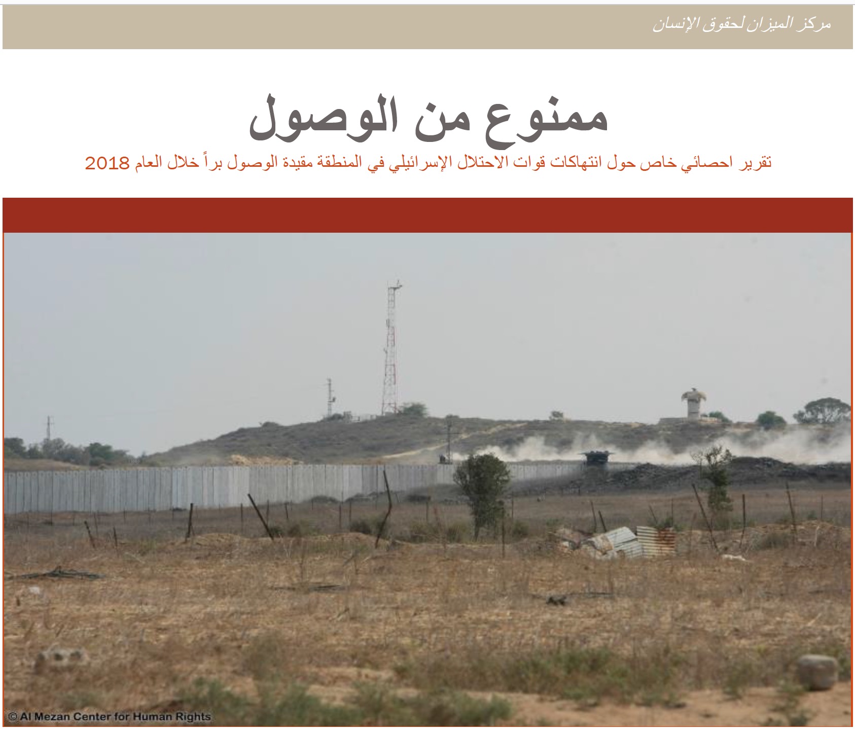تقرير احصائي خاص حول انتهاكات قوات الاحتلال الإسرائيلي في المنطقة مقيدة الوصول براً خلال العام 2018