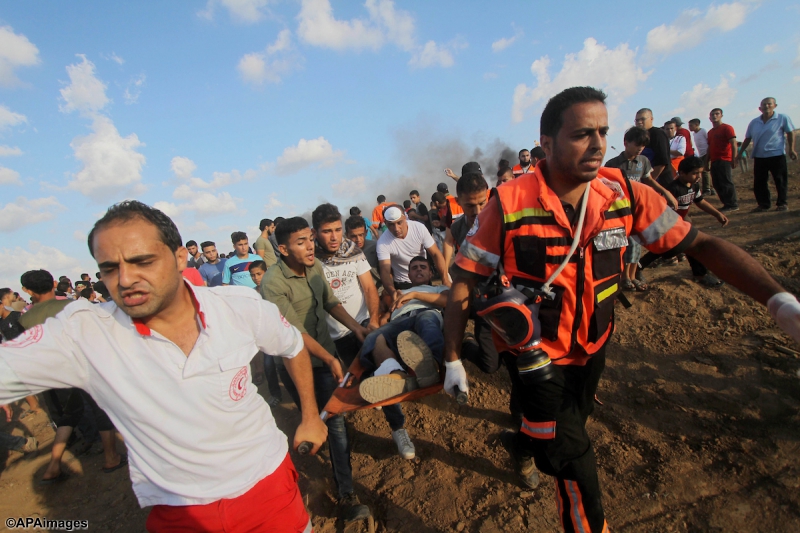 مركز الميزان لحقوق الإنسان إذ يعرب عن استنكاره الشديد لاستهداف المدنيين العزل المشاركين في المسيرات السلمية لاسيما الأطفال، وتكرار استهداف العاملين في الطواقم الطبية بالرغم من التزامهم بالحيادية الطبية، والصحافيين بالرغم من وضوح شاراتهم المميزة، فإنه يكرر إدانته واستنكاره لسلوك قوات الاحتلال، وتعمدها إيقاع الأذى في صفوف المدنيين دون اكتراث بقواعد القانون الدولي الإنساني ومبادئ القانون الدولي لحقوق الإنسان.