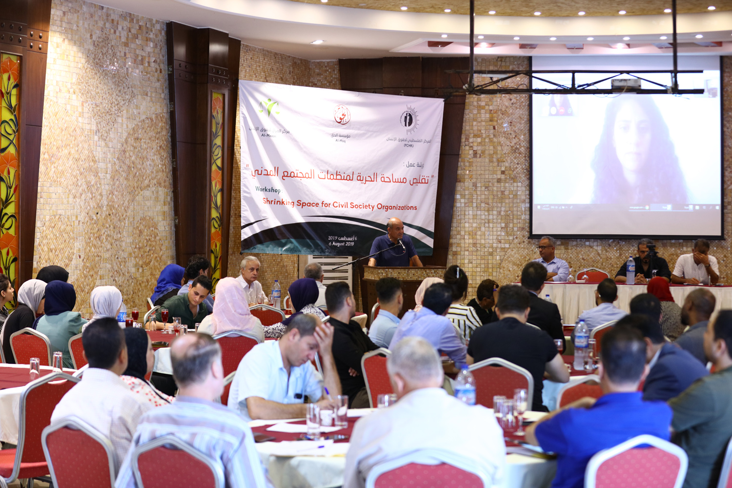 نظم المركز الفلسطيني لحقوق الإنسان، مؤسسة الحق، ومركز الميزان لحقوق الإنسان اليوم الثلاثاء الموافق 6 أغسطس 2019، ورشة عمل مشتركة تحت عنوان: " تقليص مساحة الحرية لمنظمات المجتمع المدني"، وذلك في قاعة استراحة اللايت هاوس، على شاطئ بحر غزة. حضر اللقاء لفيف من مؤسسات المجتمع المدني، ونخبة من المختصين والمهتمين بقضايا المجتمع المدني الفلسطيني. أثارت الورشة مشكلة تقليص مساحة الحرية لمنظمات المجتمع المدني وخاصة المؤسسات الحقوقية، وناقشت السياسات والاجراءات التي تمارس ضد منظمات المجتمع المدني والمؤسسات الحقوقية في فلسطين لتقليص مساحة الحرية المتاحة لها وتقويض عملها ومصداقيتها.
